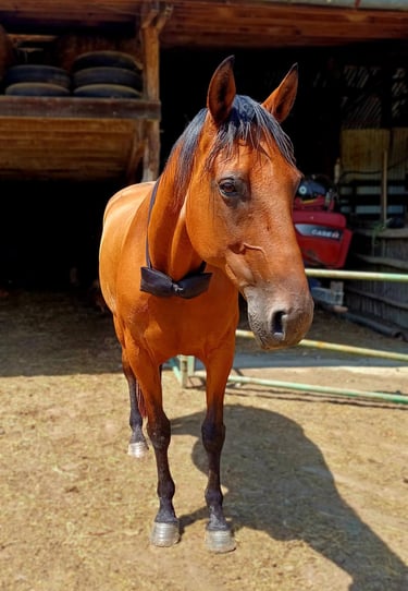 Avant d’entrer dans ma vie, Camel a été cheval de course en trot attelé. En 2021, il a été pris en charge par une association alors qu’il devait partir à l’abattoir. Gravement malade, atteint de piroplasmose, son pronostic était incertain : une chance sur deux de s’en sortir.